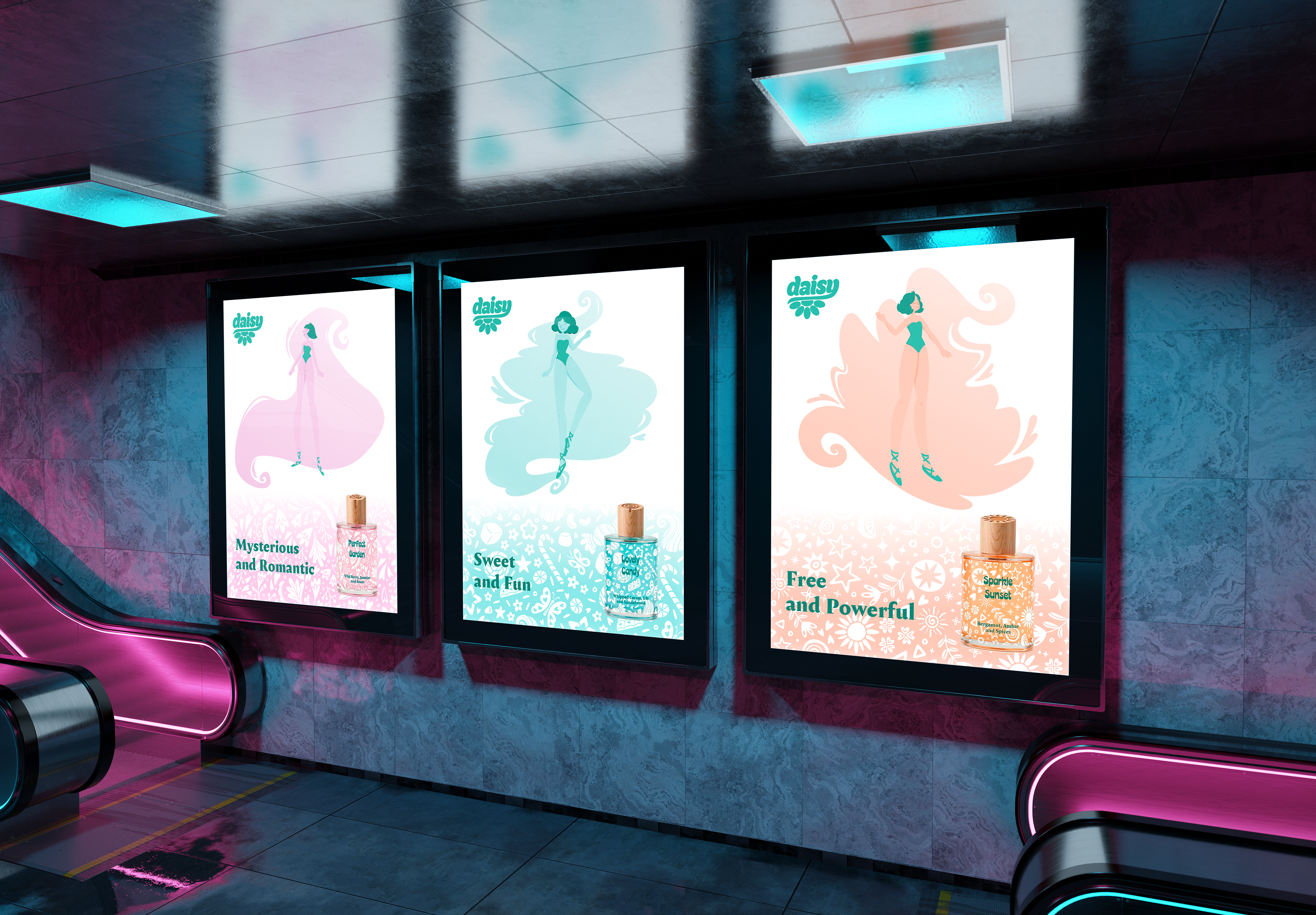 A brand in my mind invited me to develop three striking personalities to express the delightful sensations of its three exclusive fragrances that exude confidence and style.